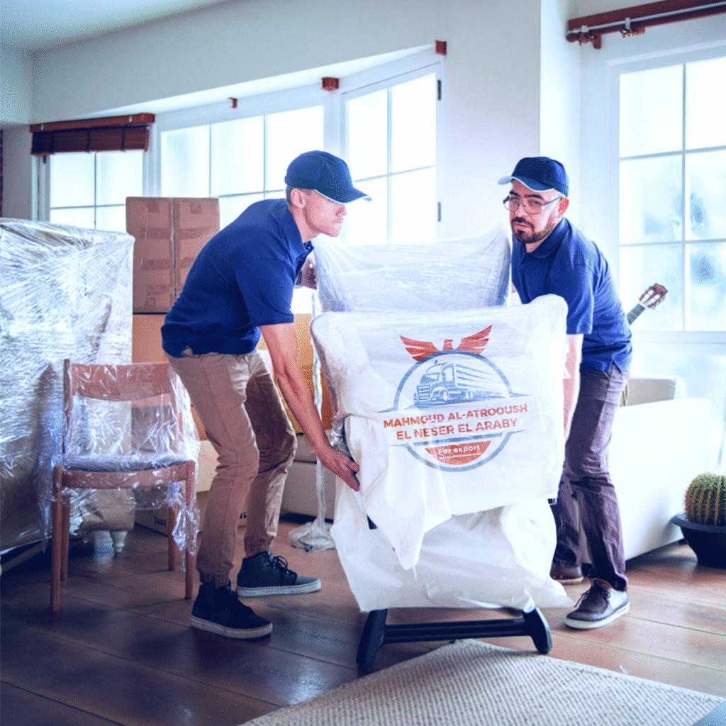 نستخدم خامات تغليف عالية الجودة تناسب كل نوع من الأثاث، لضمان الحماية الكاملة ومنع الخدوش أو الكسور خلال مراحل النقل